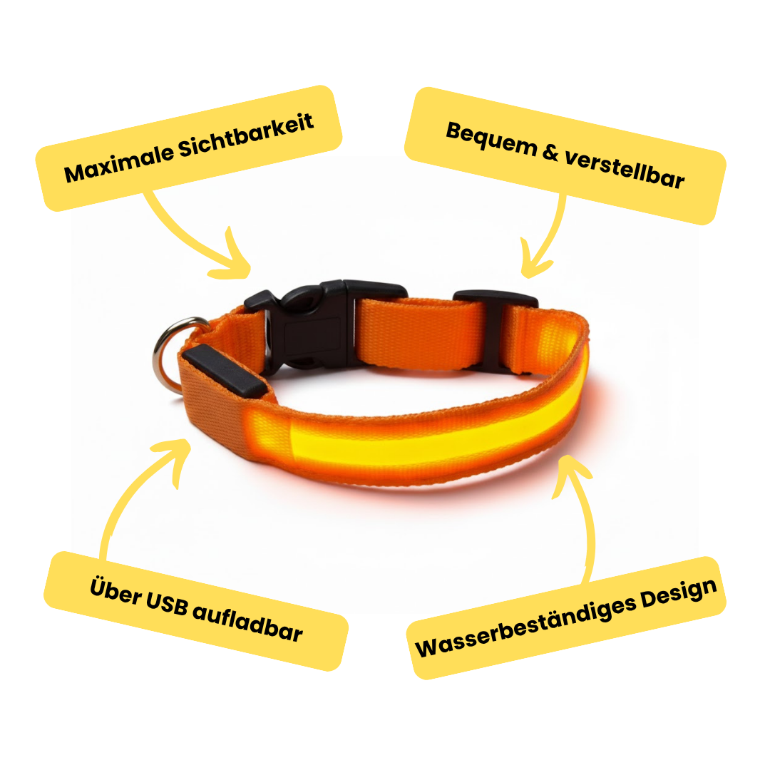 Mit dem GlowGuard LED-Halsband gehst du sicher, sichtbar und mit einem guten Gefühl spazieren – auch im Dunkeln.